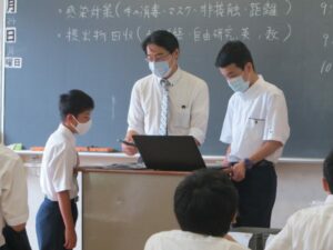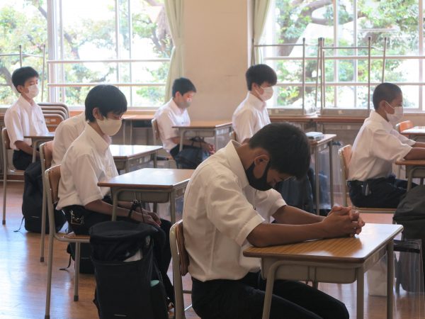 例年より短い夏休みを過ごし、8月24日(月)から2学期が始まりました。分散登校中の本校では、24日(月)と25日(火)の両日に、各日登校してきた生徒とともに、校内放送による始業式を行いました。久しぶりの讃美歌の音色や聖書の言葉に、生徒たちは目を閉じて静かに耳を傾けていました。