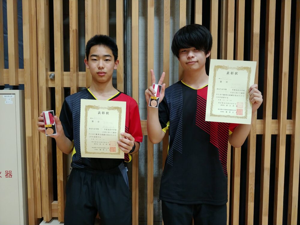また、個人戦では、中2の永野君・森下君ペアが大健闘し、見事に3位という結果をつかみ取ることができました。初戦は、19日で赤羽岩淵中学のペアとの試合で2連勝し、翌週の一戦に備えました。中学2年生の二人は、試合出場経験はあまりありませんでしたが、立派に試合をこなし、とても息の合ったプレーを見せてくれました。三回戦が行われた翌週26日の初戦は僅差(20-22)で、あと1歩のところで負けてしまいました。次の試合は、力尽きてしまい9-21で敗れてしまいました。希望も課題も見えた一戦となりました。