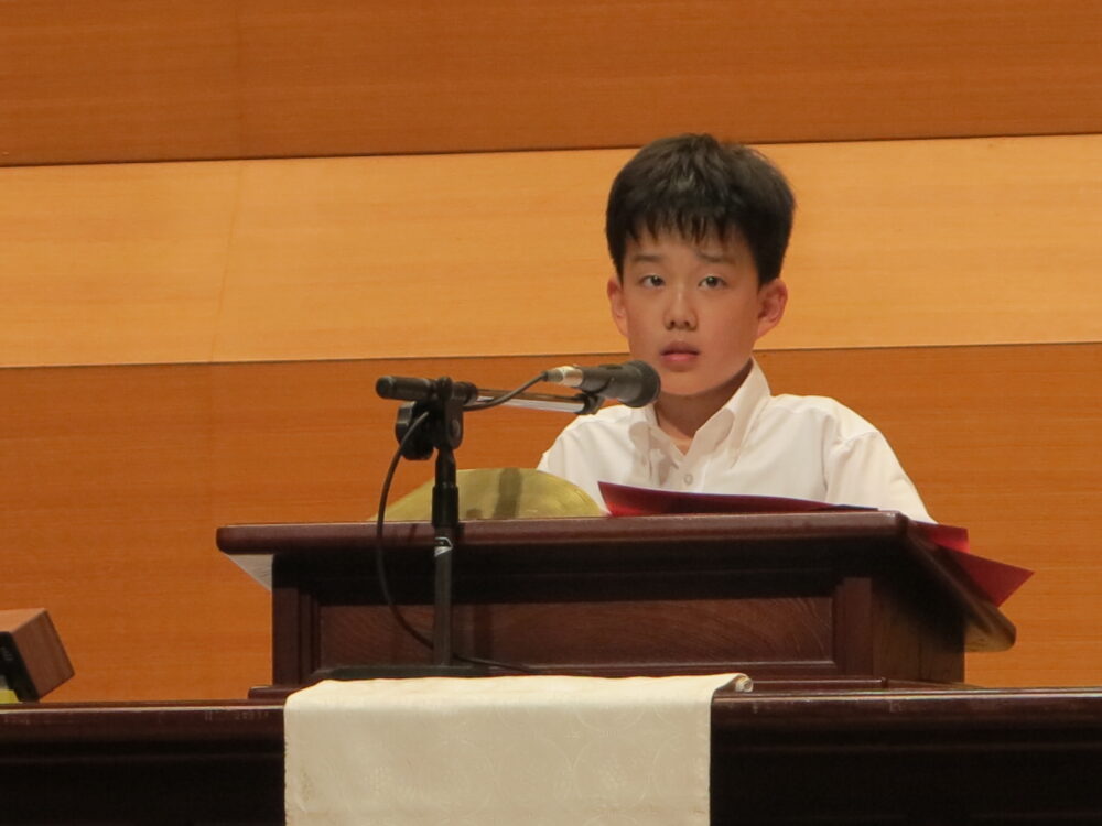 久保チャプレンにより、聖書は、出エジプト記20章12節が朗読されました。