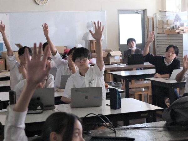 といった、「哲学する」ための「問い方」について学びました。授業や試験などで求められる「答えを出す」「正解を導く」といった考え方とは違う見方に、生徒たちは新鮮な驚きの表情を浮かべて聞き入っていました。