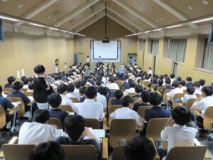対話の時間を終えて、生徒たち全員ガイホールに集まり、今日の振り返りを行いました。感想をいくつか紹介します。