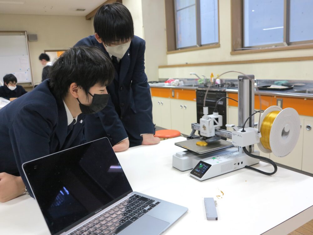それからCADのレクチャーを受け、3Dプリンターで型を制作していきますが、型の形成や大きさに苦戦している様子でした。しかしながら3Dプリンターを用いた表面形成技術は、生徒たちにとって新鮮な体験であり、技術とデザインの融合が自分たちの可能性を広げられることを実感しているようでした。もちろん、その間クッキー生地をつくる作業にも余念がありません。
