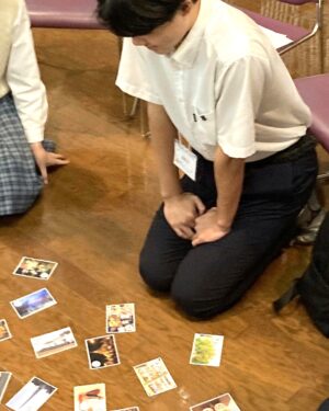 第2部では玉川聖学院と東洋英和女学院のミャンマー支援の活動報告を聞きました。また、ミャンマーで医師をされている荒川泰子先生をお招きし、クーデター以降の現状を伺いました。その後、本校の野中茂壮(高2)が登壇し、高校GICプロジェクトの宗教文化ゼミ『innore designプロジェクト』紹介と、ヤンゴンカルタを行いました。カルタには本人とご家族が撮影したミャンマーの風景が使用されています。カルタの解説に耳を傾けながら遊びを通してミャンマーについて理解を深めることができました。
