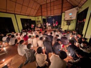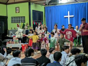 クリスマスイブ、メーコック財団(以下MKF:Mae Kok Foundation)の子供たちと一緒にクリスマスをお祝いしました。みんなでダンスやゲームを楽しみ、讃美歌を歌いました。