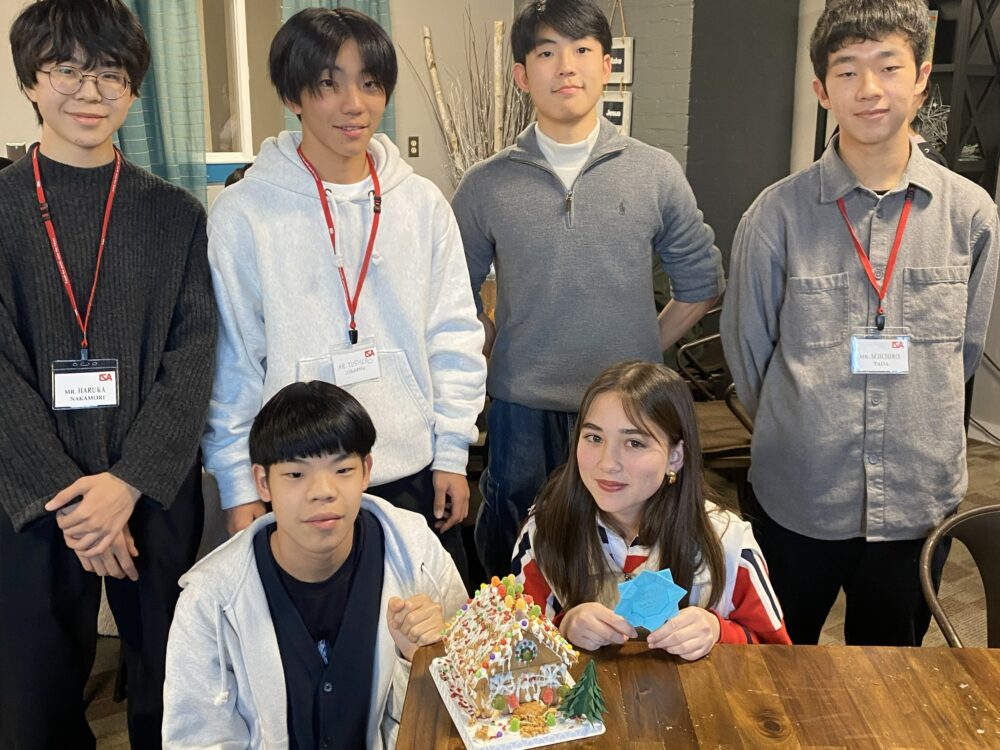 5日目の現地高校生との交流会では、日本の伝統的な食文化を堂々とプレゼンしました。流行語紹介やクイズ大会、また「ジンジャーブレッドハウス」作りを通して、チームで協力しながら和気藹々と親睦を深める姿が見られました。