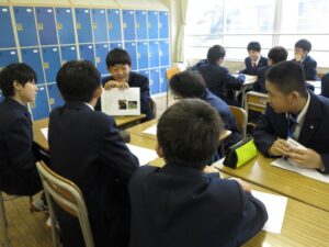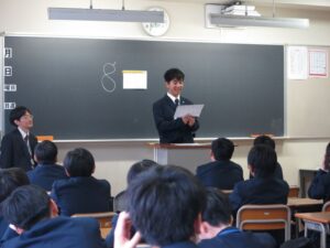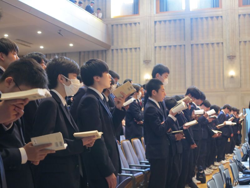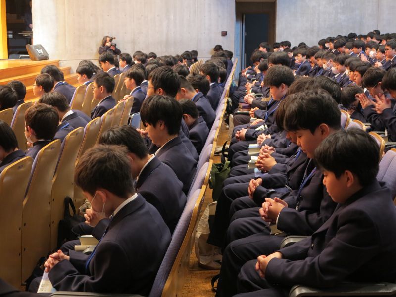 中学1年生はその後、学年集会に出席し、学年聖句や「ドライビング・クエスチョン」、学校生活のマナーについて学びました。