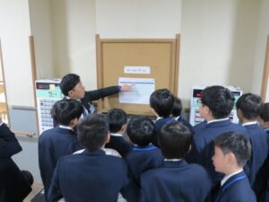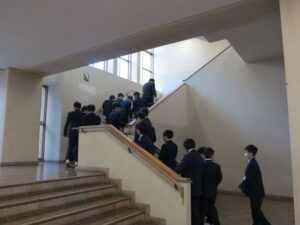 聖学院での生活をスタートさせるにあたり、まずは安全かつ健やかに過ごすためのルールや心得を再確認しました。校内探索では、教諭の引率のもとで各教室、特別教室などを巡り、これから6年間をともに過ごす施設への理解を深めました。生徒たちは、一つひとつの施設が自分たちの成長のために整えられていることを実感し、中学生になった自覚と、新しい環境への期待に胸を膨らませていました。単に場所を覚えるだけでなく、集団生活におけるマナーや他者への配慮を学ぶことで、聖学院生としての土台を築く大切な時間となりました。